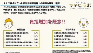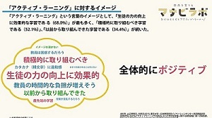 アクティブ・ラーニングへのイメージはポジティブなものが多く、取り組んでいると答えた割合も高い。しかしながら、現場の教職員はアクティブ・ラーニングの導入によって負担が増加することを懸念していことがわかる。