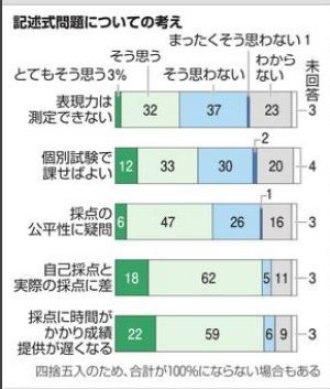 有力私立大学においては国公立大学と比較すると受験生の人数がかなり多いため、記述式問題を導入した場合の採点のコストの問題が発生するが、
