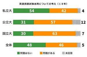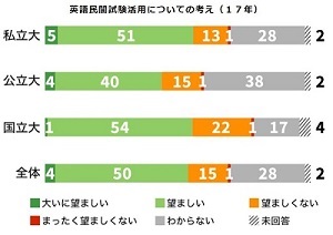 現場の教員の意見としては、「民間試験に問題ありというメッセージ」「他大学を併願する生徒は結局、民間試験を受けなければならないのではないか」「CEFRのA2以上の英語力があることを