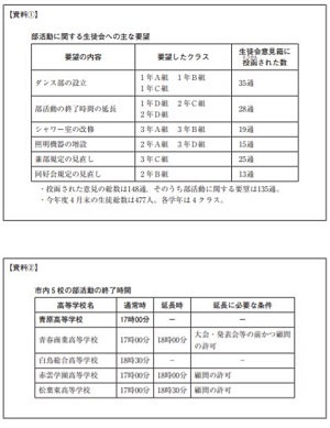 学校が作成する調査書とは別に、受験生本人が生徒会や地域での活動など自分自身の経験を振り返り、文章化してもらう。